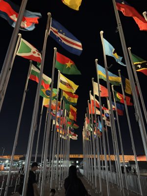 駅から会場に向かう道にある万国旗は圧巻でした。