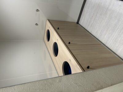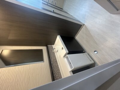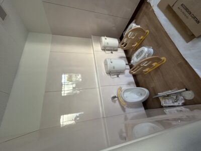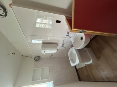 トイレブース、洗面台ライニング、小物入れロッカー、分別用ゴミ箱、洗面造作家具等を製造、施工させてもらいました。